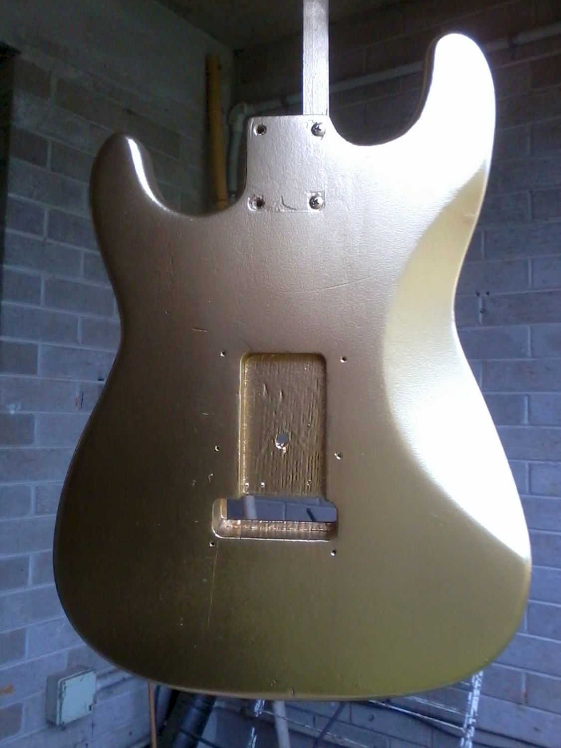 The good news is that I did manage to spray a touch-up coat of Gold Paint on the body yesterday and didn't get any paint runs at all, it seems to be coming along pretty well now, I reckon two more coats of the Gold Paint and then once the last coat has dried it'll be ready for clear coating.