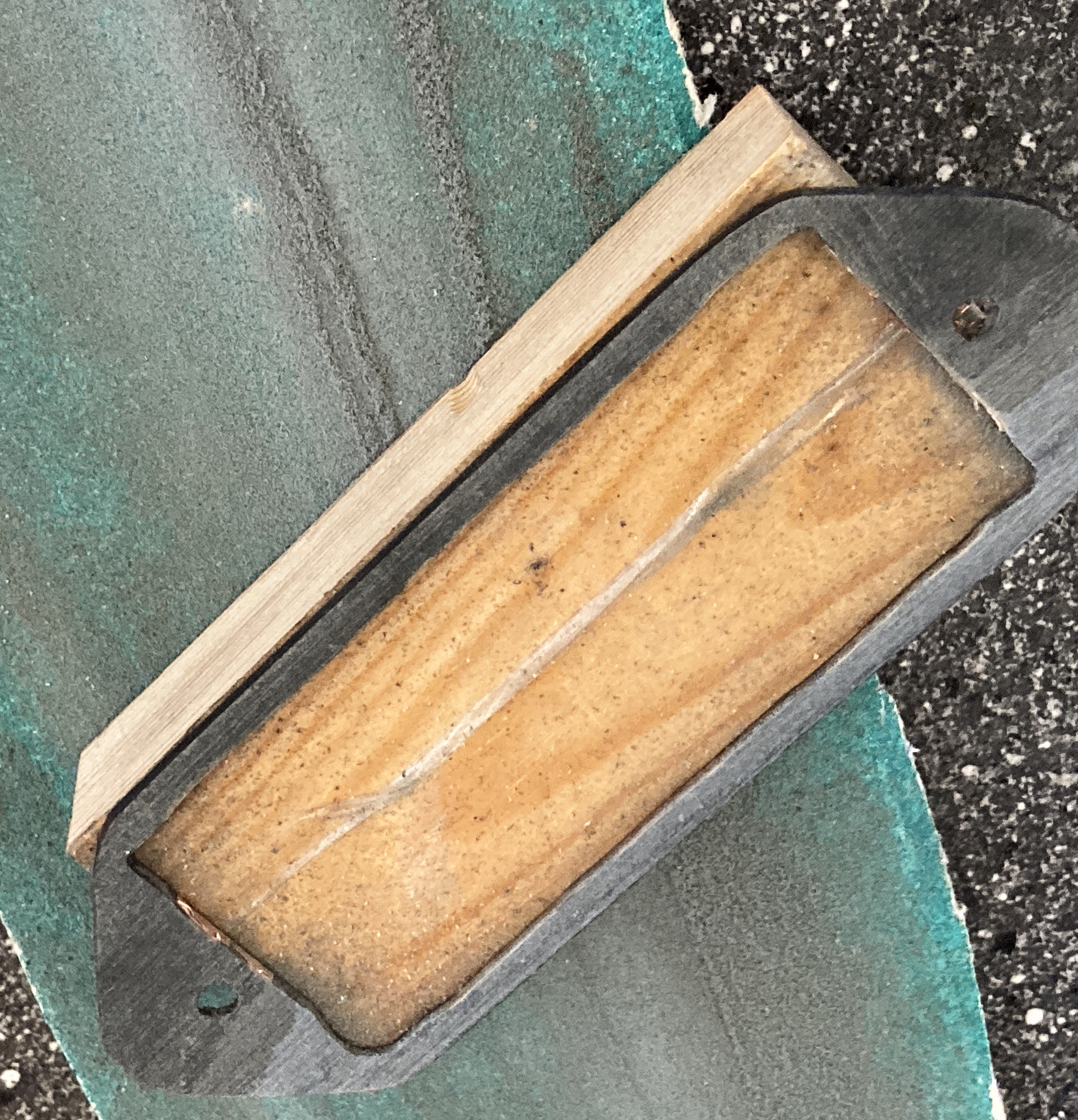 The Bare Knuckle pickup arrived yesterday and my 3mm thick fibreboard for a spacer arrived today, so I made the spacer. Found it was just a bit too tall, so had fun sanding it down at an angle. Here it is stuck with double-sided tape so it was easy to rub along the sandpaper stuck to another bit of wood.