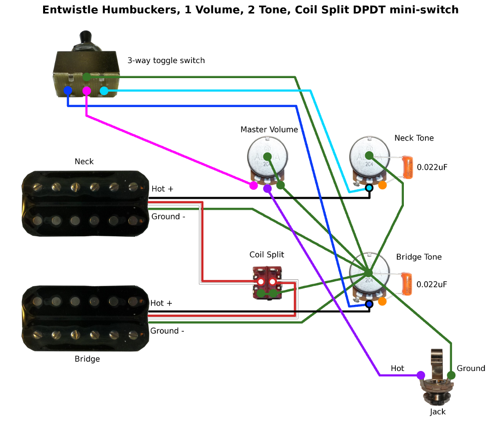 1 Volume, 2 Tone with coil-split: