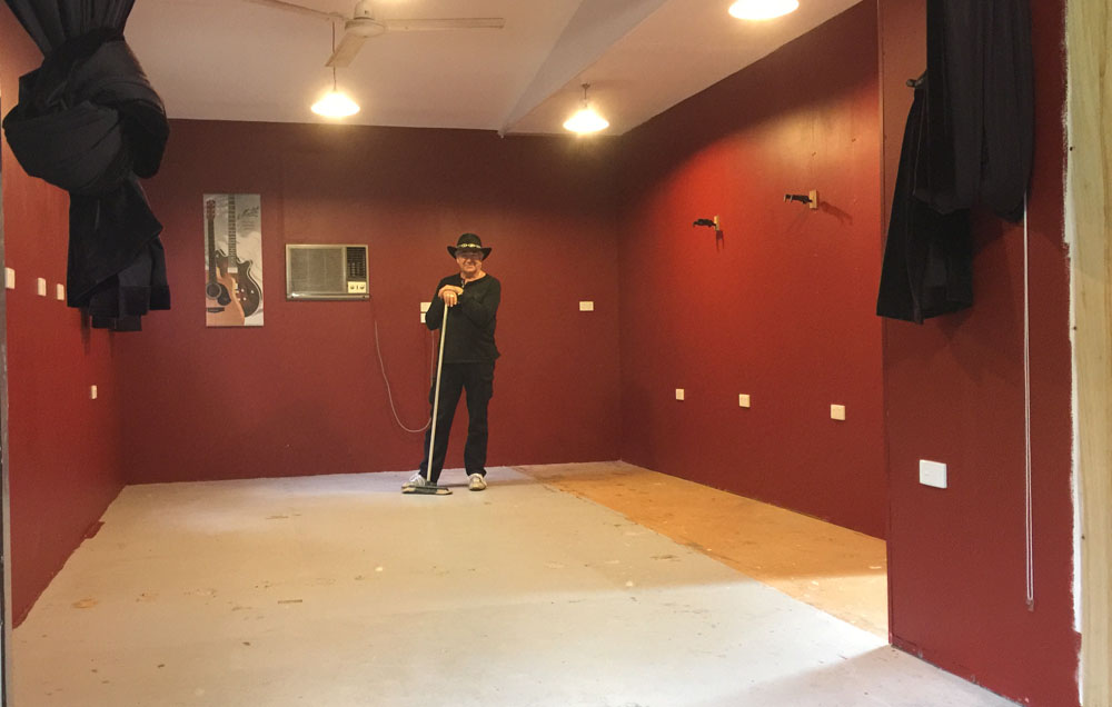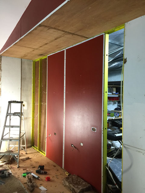 So quite a few weeks have been taken up moving the interior wall a metre into the workshop. A metre makes an incredible spatial difference. (all the other band members were "keen to help", but I reckon I only got about 8 man/hours help in total.)