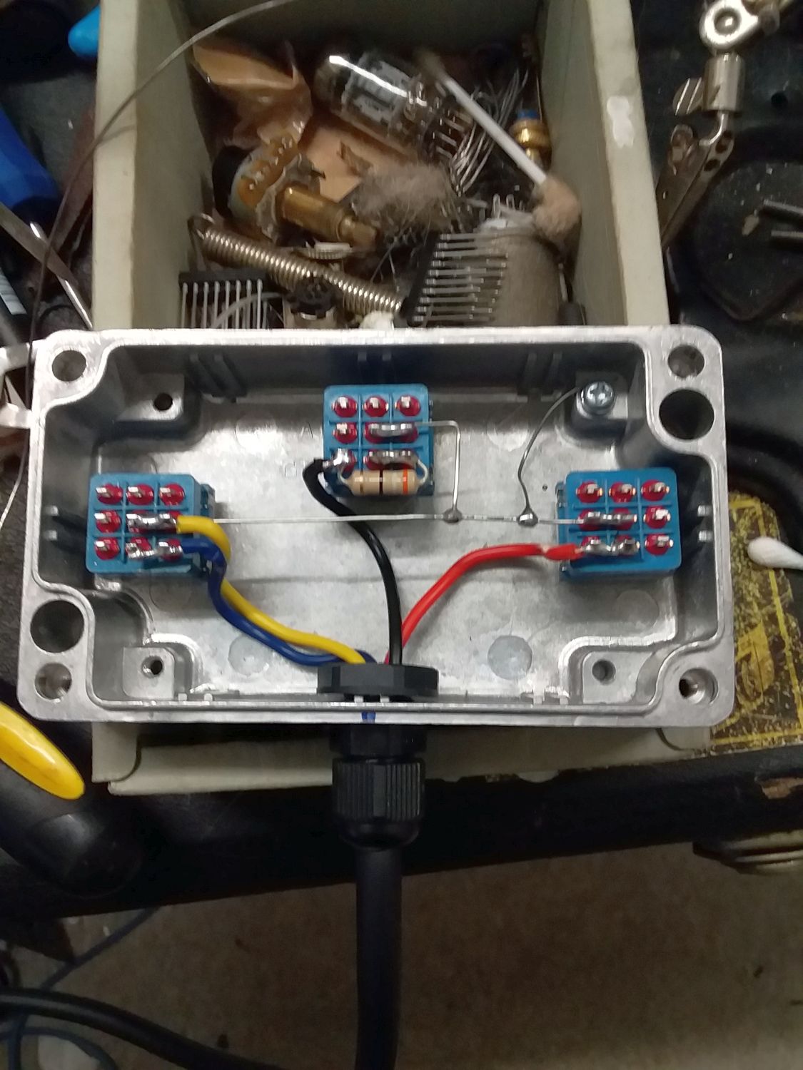 So, I bet you guys are interested in hearing about what I've been up to this week, well, I've been in the process of making a complete new footswitch for my Super Twin amp, yes, it does feature footswitching, the built-in 5-band EQ, Distortion, and Volume-boost are all foot-switchable, I went to my local Jaycar Electronics shop on Tuesday and bought all the bits and pieces needed to make the new footswitch, here's a couple of pics of it: