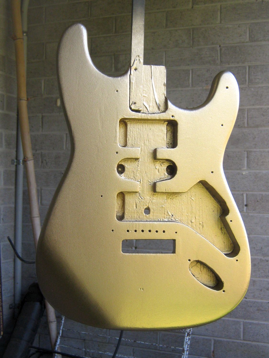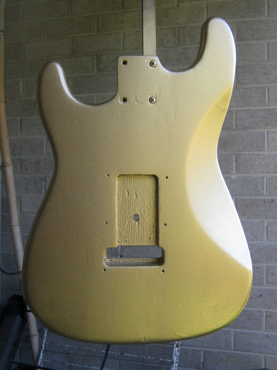 I've got a Gordon-Smith hardtail Strat-style body I need to touch up some knocks on, and will probably spray the edges dark brown to help cover up a mixture of damage and a really bad factory spray job. There were big blobs of sunburst paint on teh edged that hadn't been smoothed down under the clear coat and you could see visible lumps! Rubbing back worked in some areas but in others the blobs came away revealing the under-finish. So plan to use a darker solid colour scray to cover them up with - plus it will increase the sunburst effect, which is a bit weak as it stands.