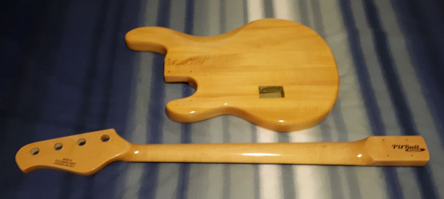 Now shown with the body. Whilst maple and basswood are fairly light coloured timber, basswood typically is a little bit darker and really pleased with how the neck & body colours are a very close match.....