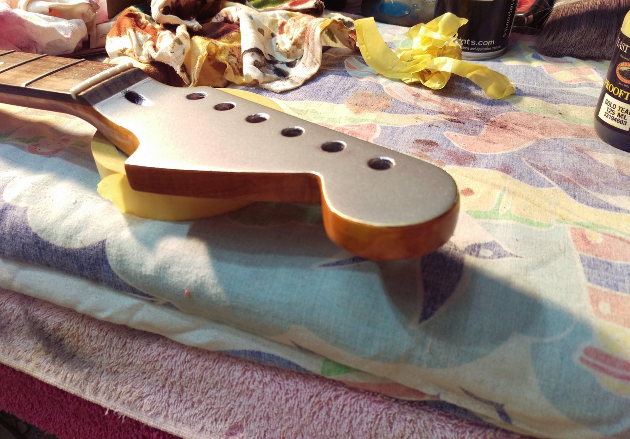 The headstock with tape removed and slightly cleaned up overspray with thinners.