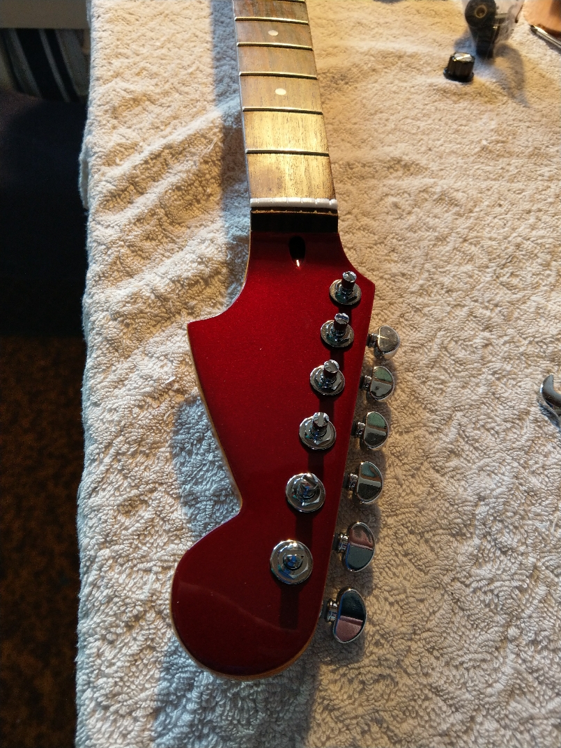 So headstock is back to pristine condition, even after the spray can fell on it and i had to redo the finish. Note to self.......be very careful where you put a nearly empty can with a plastic handle attached, it makes it very very top heavy!