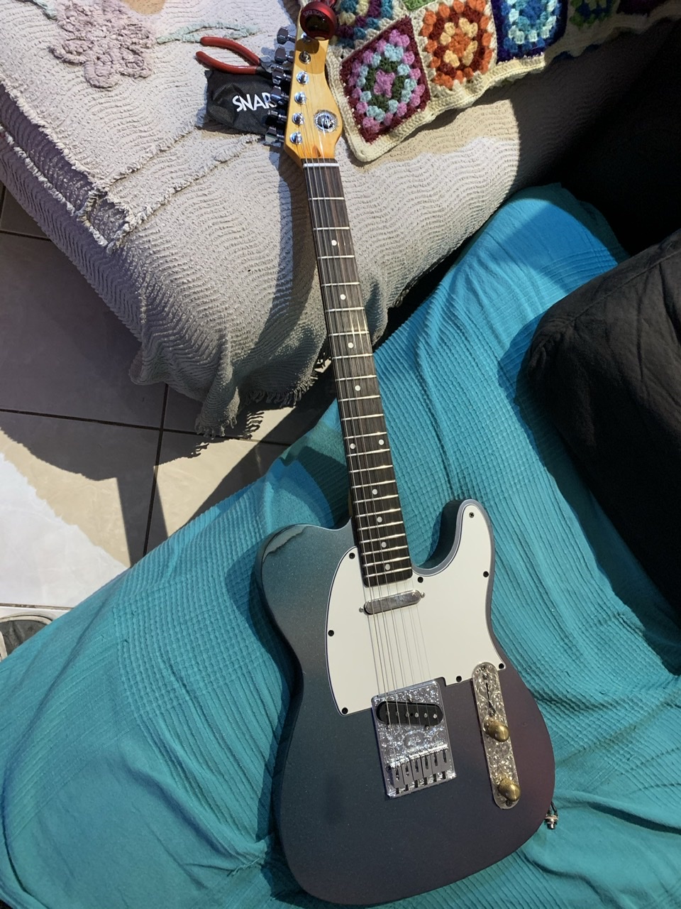 I think I have the action too low. A bit of fretbuzz but, too tired to do more on it tonight. Nut slots seem ok, and I haven’t taken much out of them (in fact, 2 passes of the file on the low e string), so I think the saddles need raising.