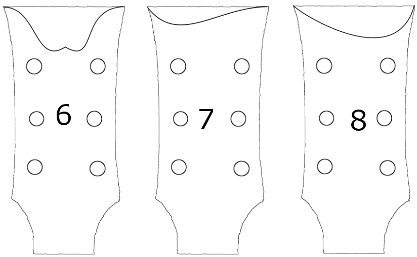 2 & 7 are very similar, just a deeper cut on 2 which could make the sharp pointy bit a tad vulnerable and susceptible to accidental breakage.