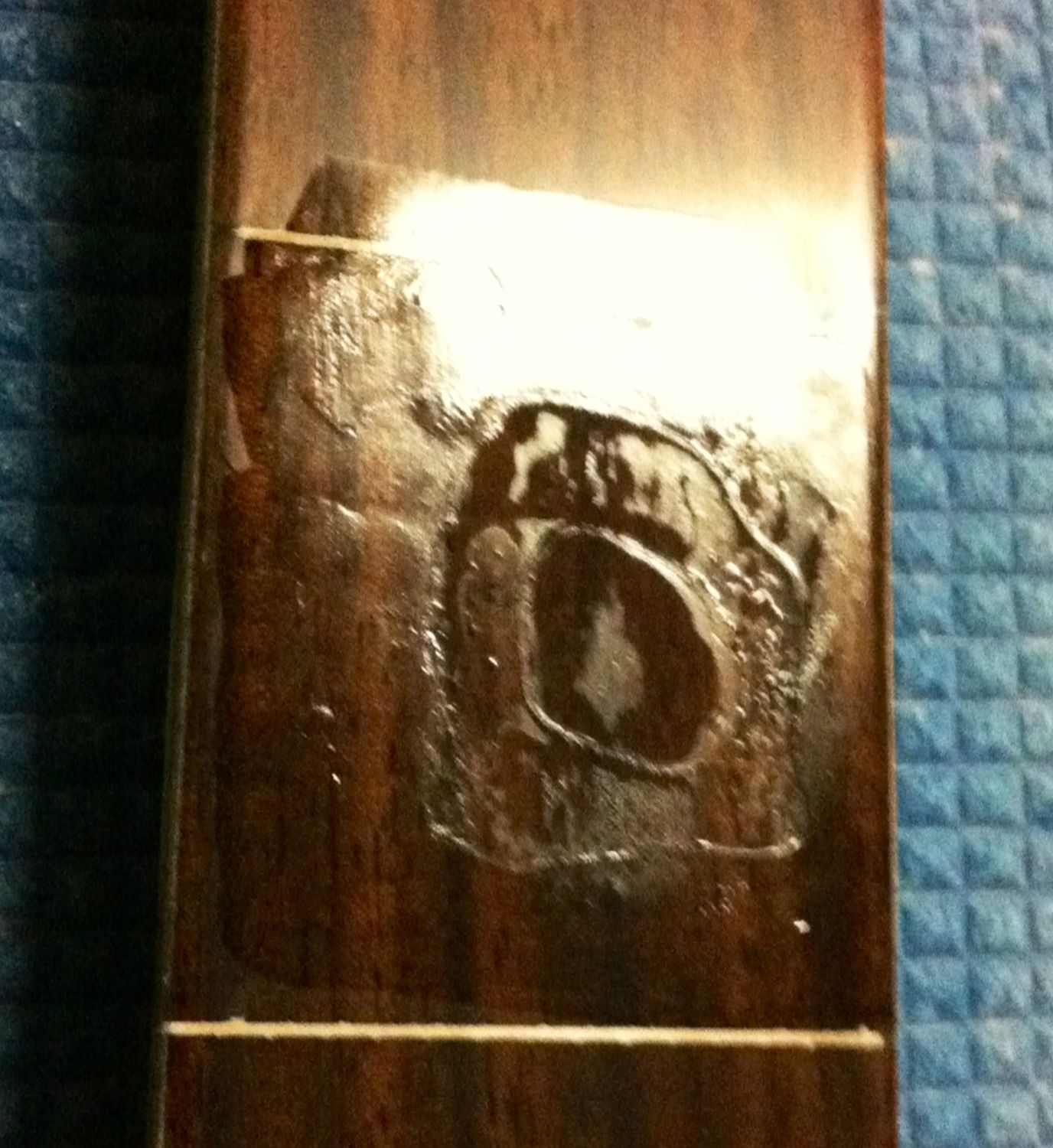 Here area couple of shots of the neck after using CA and micro mesh to 12,000 but no polish just yet. You can see the touch up eats away a lot around the affected area and to clean up I will start very lightly with 2,000 wet and then move on to 6,000 then 8,000 up 12,000 micro mesh pads. Requires a lot of patience.