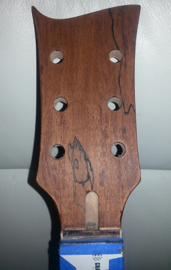 Just thought I would give an update of the shaped headstock after sanding back and applying the stain.
