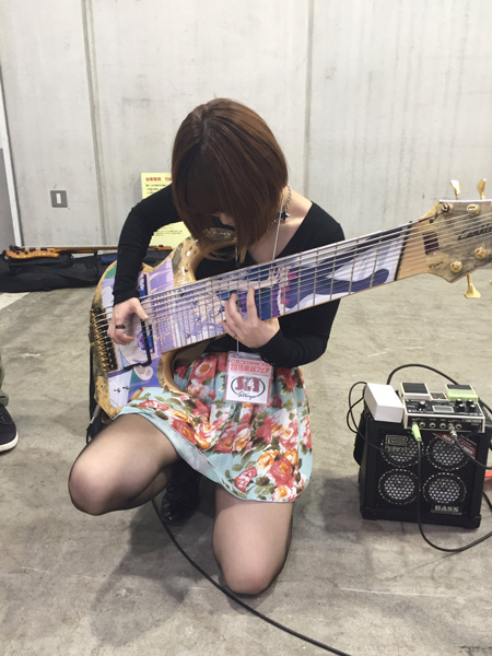 That 8string looks like the model Charlie Hunter plays. It's a combo of bass and guitar. Hunter is a monster jazz player- worth checking out to see how well he utilises that instrument.