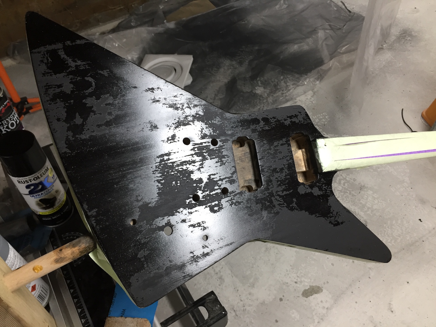 So I masked off tightly and stripped back just the fun and the front of the headstock. All turned out good, it allowed me to do some flattening off of bit I wasn't happy with.