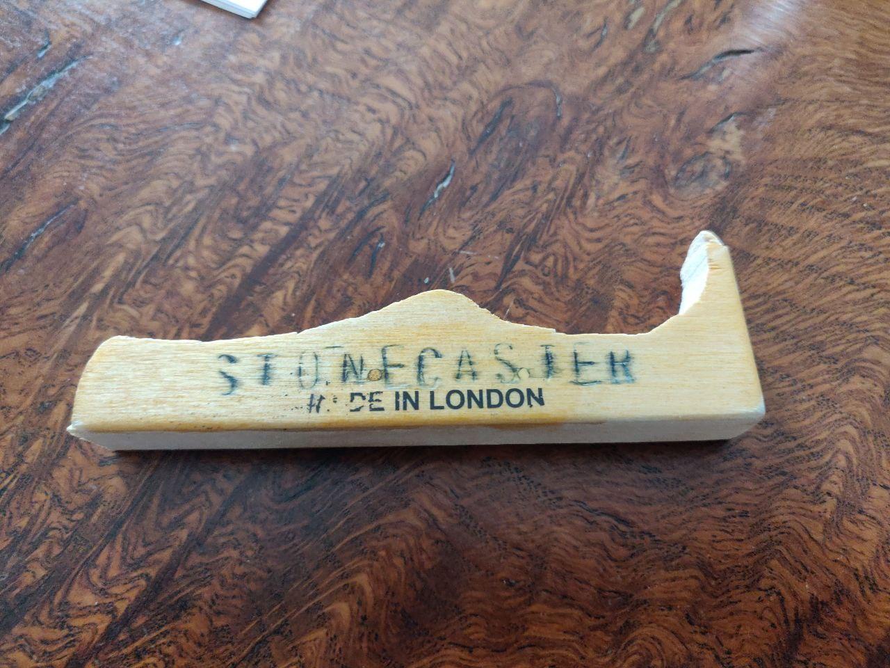 The trick I had seen on a Crimson Guitars video was to use a pencil, split in half, held against the bottom two frets to draw a line that is at the same height as the two of them (if you see what I mean) and to use that as a guide to the lowest that the slots can go. I was planning to use a mechanical pencil lead to get the same effect, then to sand the bottom of the nut to lower it appropriately. Unfortunately there was one small problem with that plan: