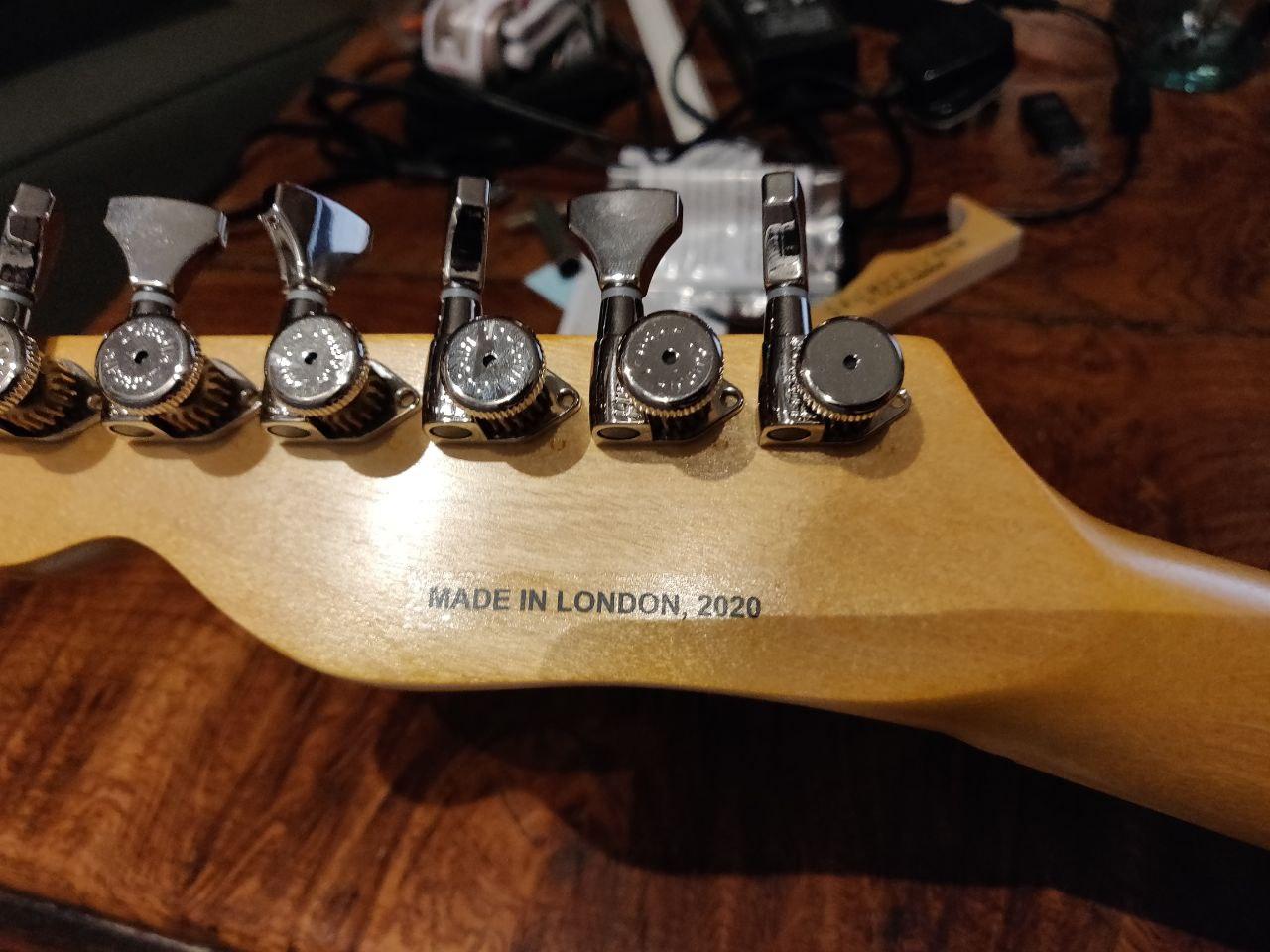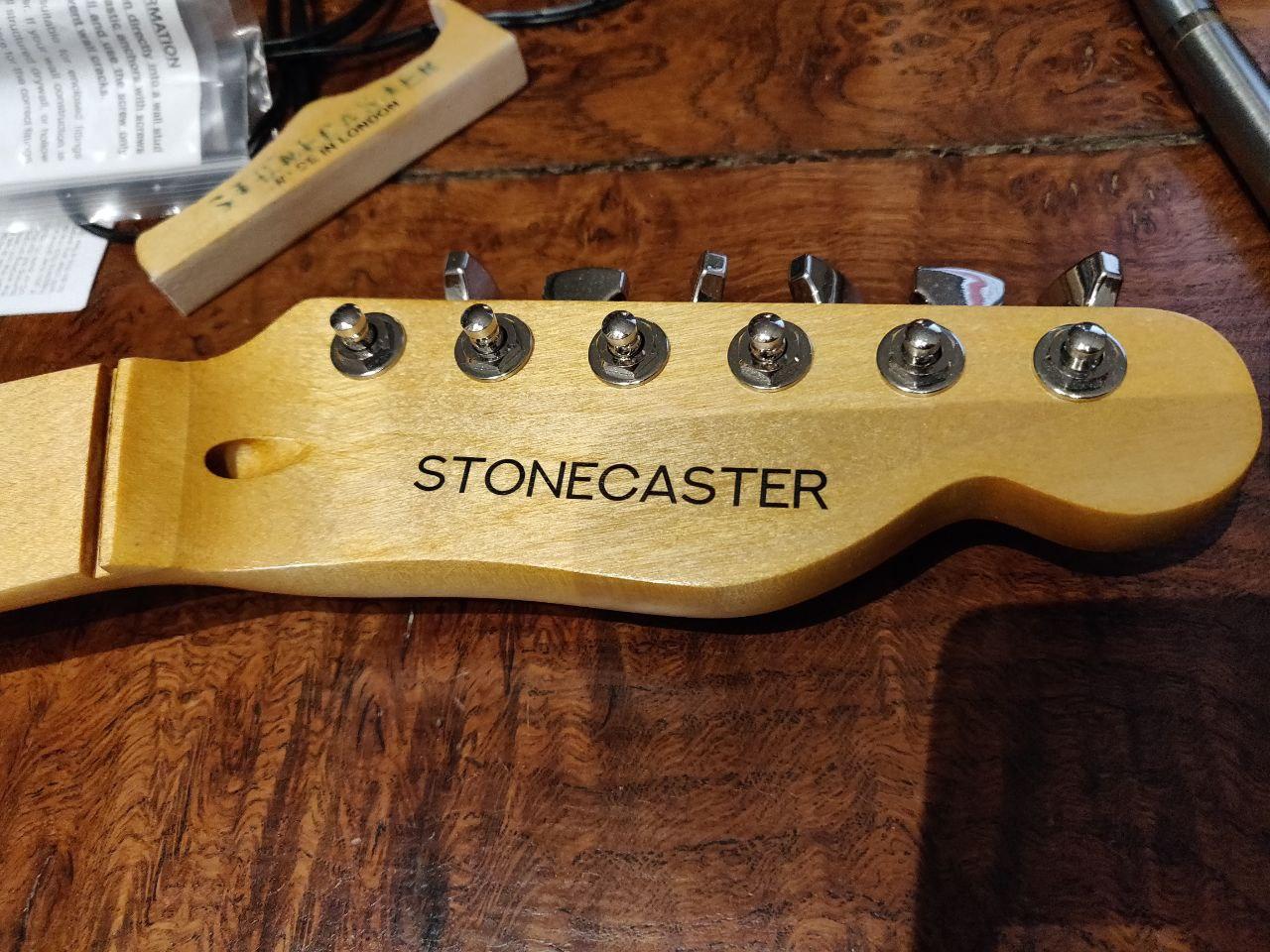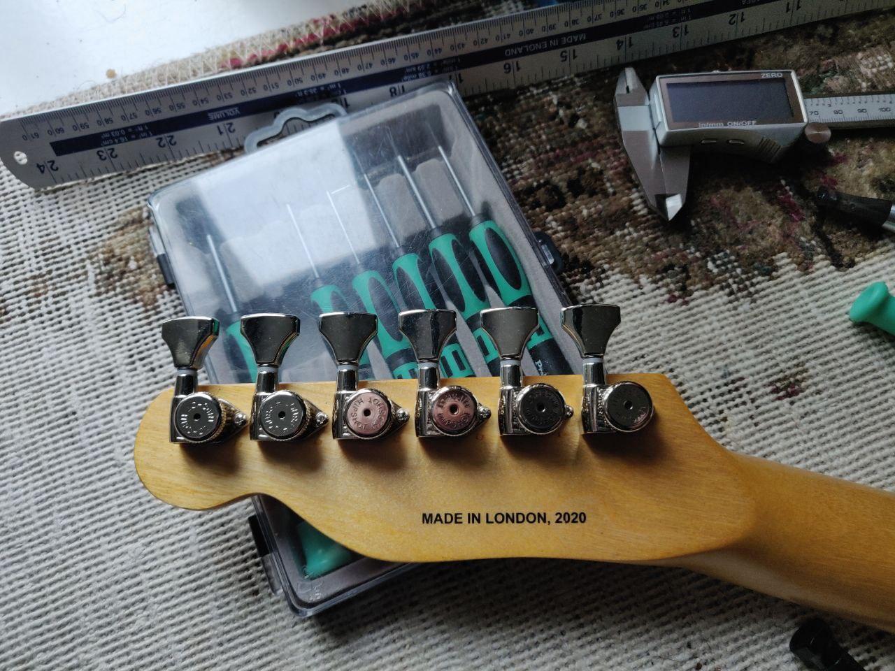 So, the next step was to put the decals onto the headstock properly, with the tuners loosely attached so that I could check how it looked: