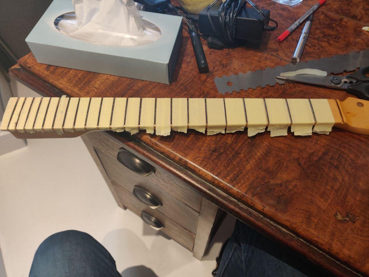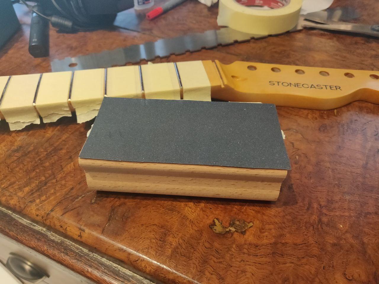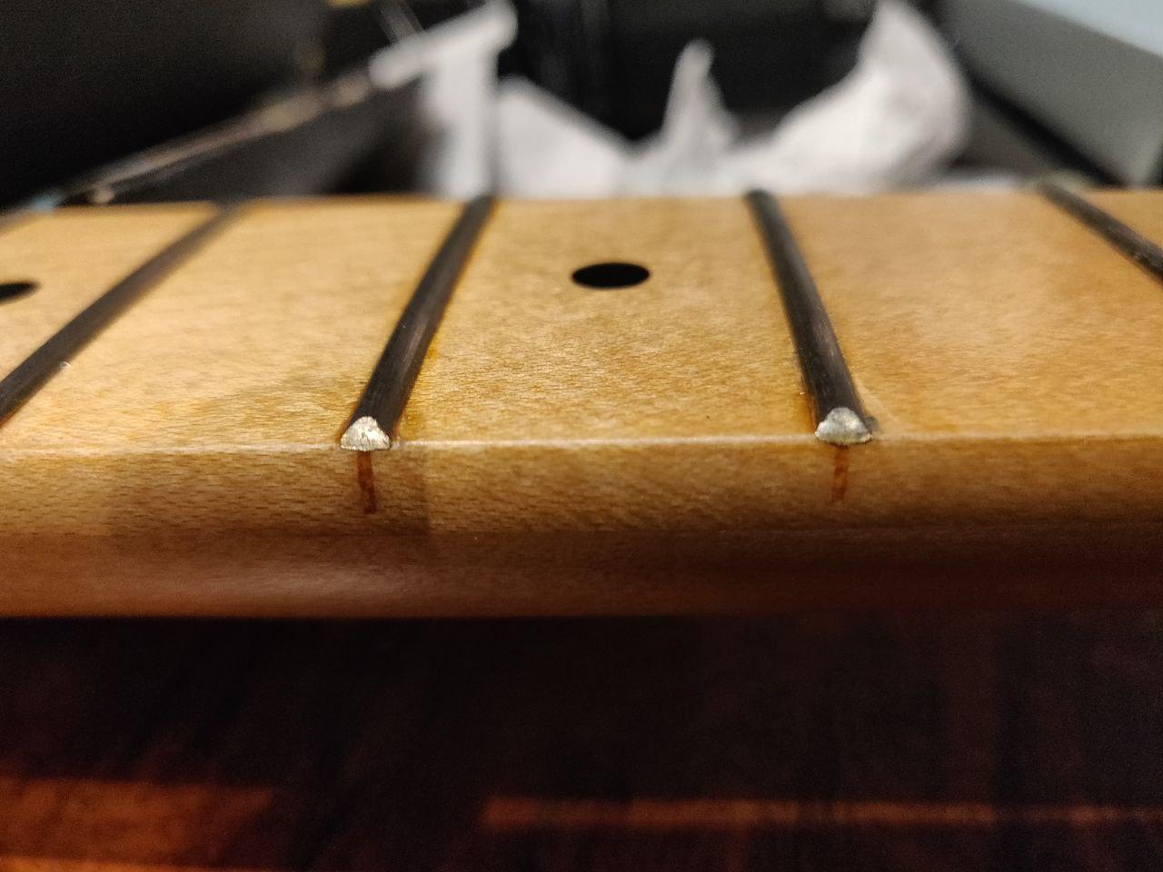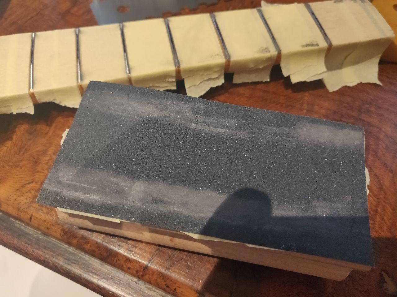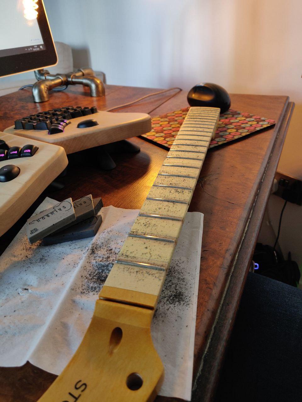 Will check that it all looks OK in daylight tomorrow, and then use the fret polishing rubbers I got from Crimson Guitars to finish up if so.