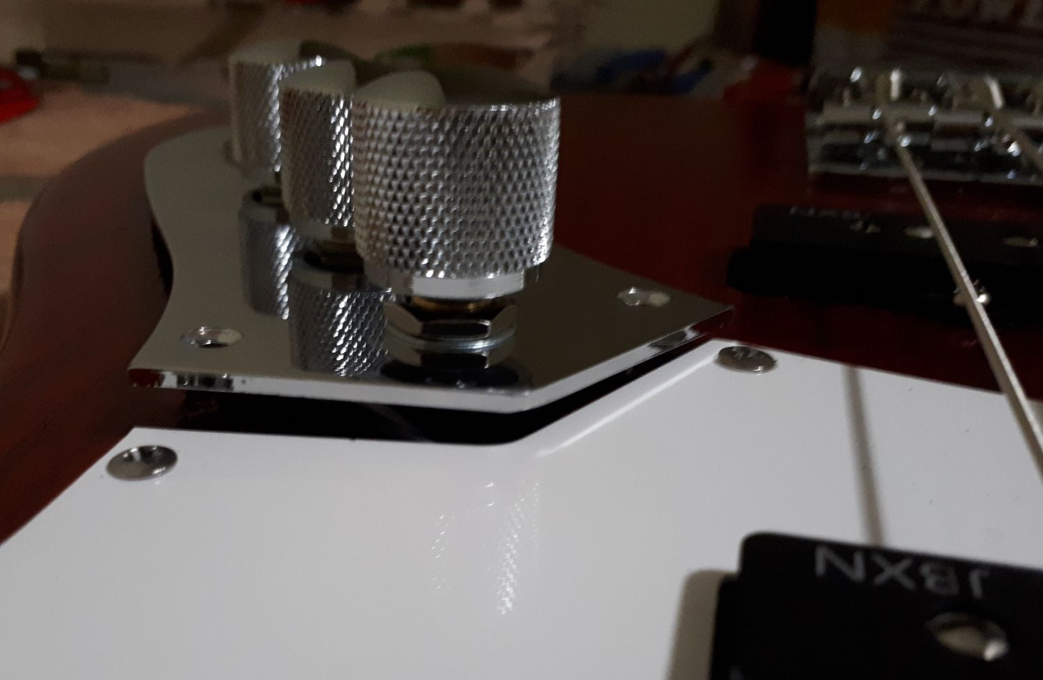@ ponch, block markers are all good sitting under about 4 coats of TO to make sure they stay put. The 3 string hipshot string retainer is a beauty. Bit pricey as it came from the states but works well to add a bit more break angel on the A string as with minimal winds on the post it was prone to jumping out of the nut slot at times. All fixed now.
