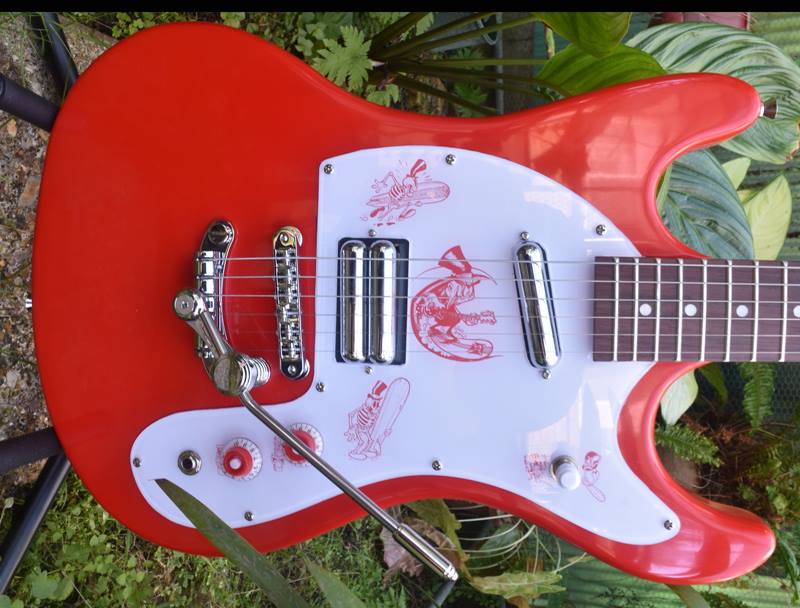 It's easy but not cheap Kick. I take the artwork to a sign maker who prints it in reverse onto clear material. I then apply it to the back of the clear pick guard so that you are looking through the pick guard to the sticker which now looks the right way around. Because you can't print white, the guard is still transparent so then a layer of white decal is put over the back of the first one....convoluted but it works.