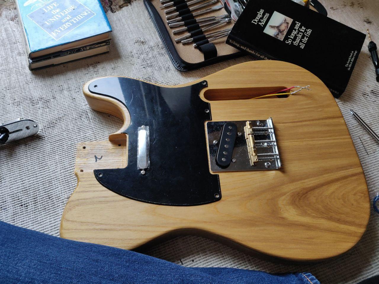 Thanks, McCreed -- I suspected that pickguard fit might not be a completely standardised thing, but it's certainly good to know for sure that I wasn't just missing something and trying to put it on the wrong way. I don't have any dowel to hand, but my e-cigarette is round and about 2cm in diameter, so that should do nicely for the control plate -- and the masking tape thing sounds like an excellent trick.