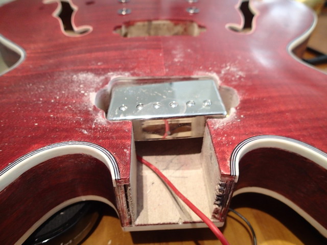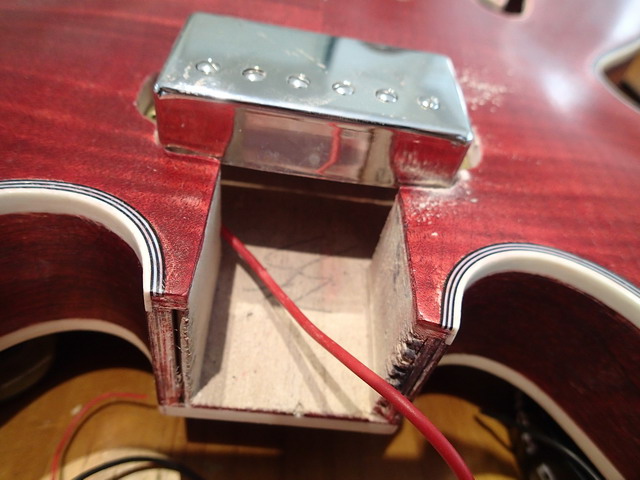 I could of used my Dremel, but couldn't risk it, next time i will make sure i have the pickups ready, and do it before i finish it.