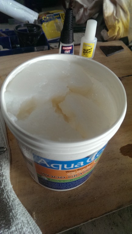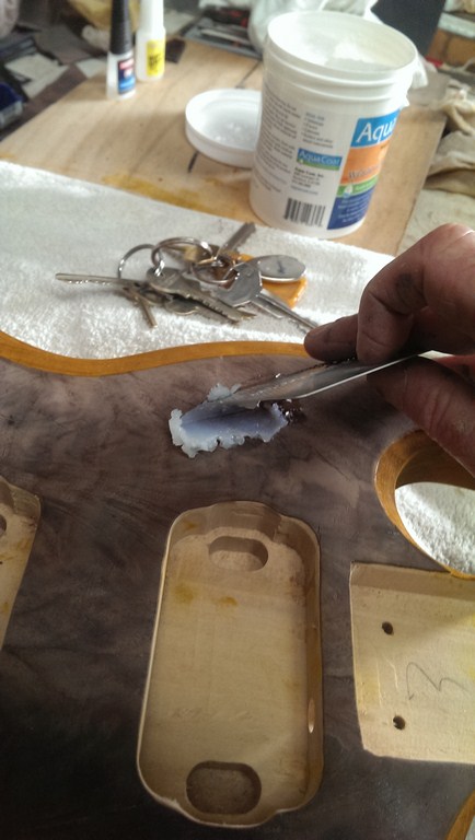With this guitar i want it to retain all the grain features, cracks, dents and undulations but at the same time look flat and smooth. To do this i looked round for a clear grain filler and found one from America but i got it from an Australian supplier.