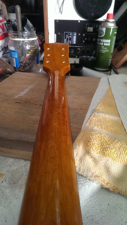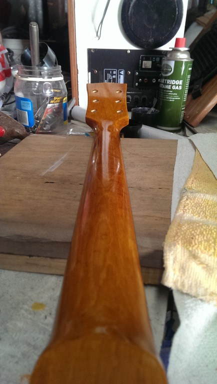 4th coat of wipe on poly to the neck