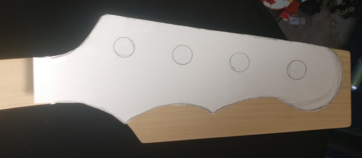 I was stuck in a very boring meeting for a couple of hours today. The lovely thing about a Zoom meeting is that people can't actually see what your hands are doing... In my case my mind wondered to headstock shape. Here's what I am thinking about. A little fatter and not as long as the Epiphone batwing...but similar idea. Wondering what folks think...