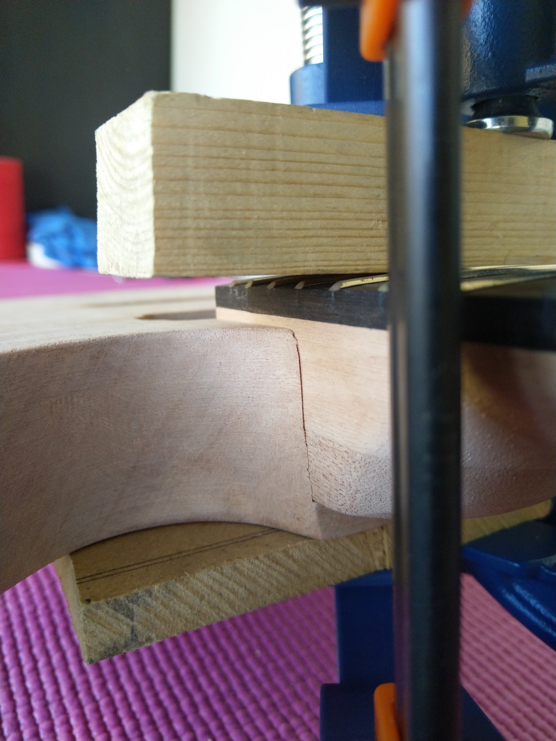 The kit's have been on the box for two more days. Today I've tried to attach the neck to the body again, but using some clamps. Here is the result: