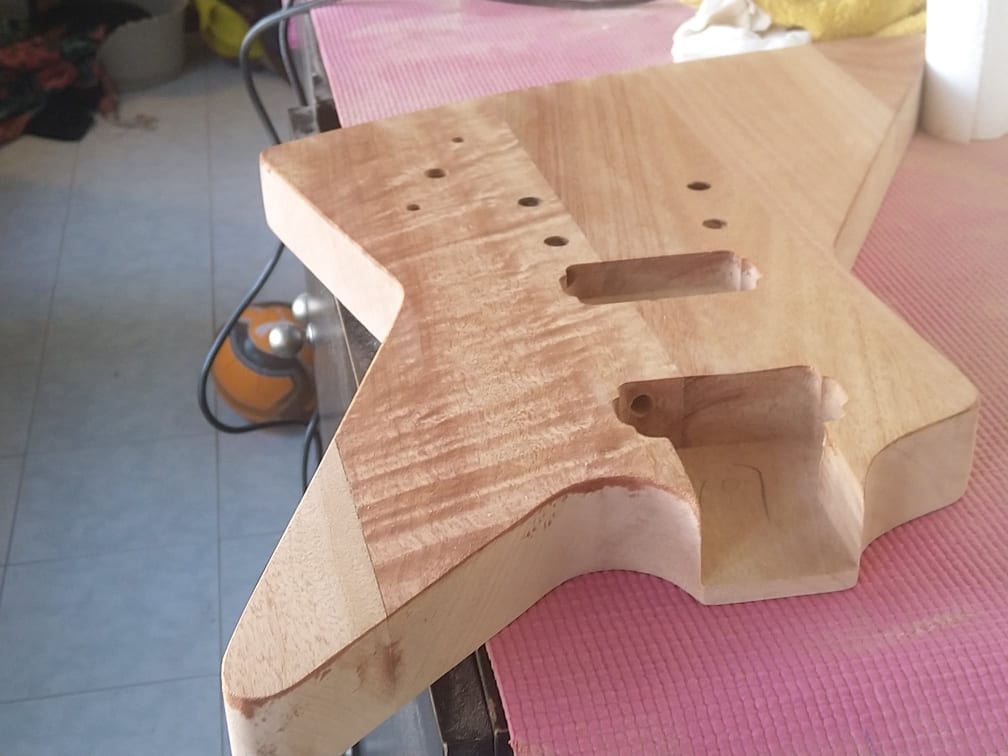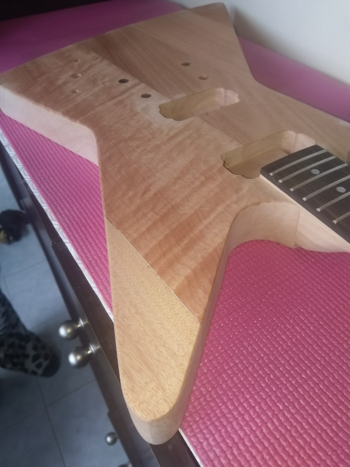 You can see that I had some fine gaps round the neck joint. I used a filler, then sanded everything smooth.