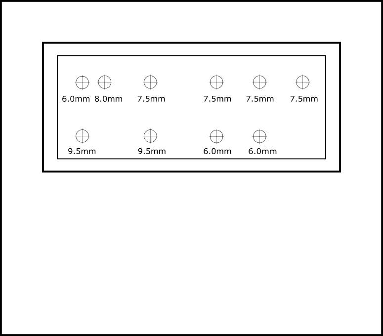 Once I have the layout looking good, I create a drilling template in another layer. This template gives me the location and size of the hole to cut in the speaker enclosure, the size of the MDF sheet that I am using to make the control panel (no metal sheets on hand), and the drilling template for the MDF:
