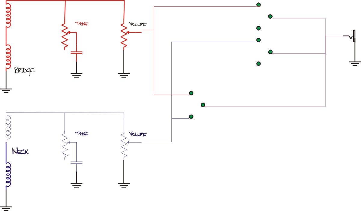 I think Tassie was suggesting the blend pot goes in the position the toggle switch on a LP goes. It would make it look rather Gretch-like IMO, but it's certainly an option.