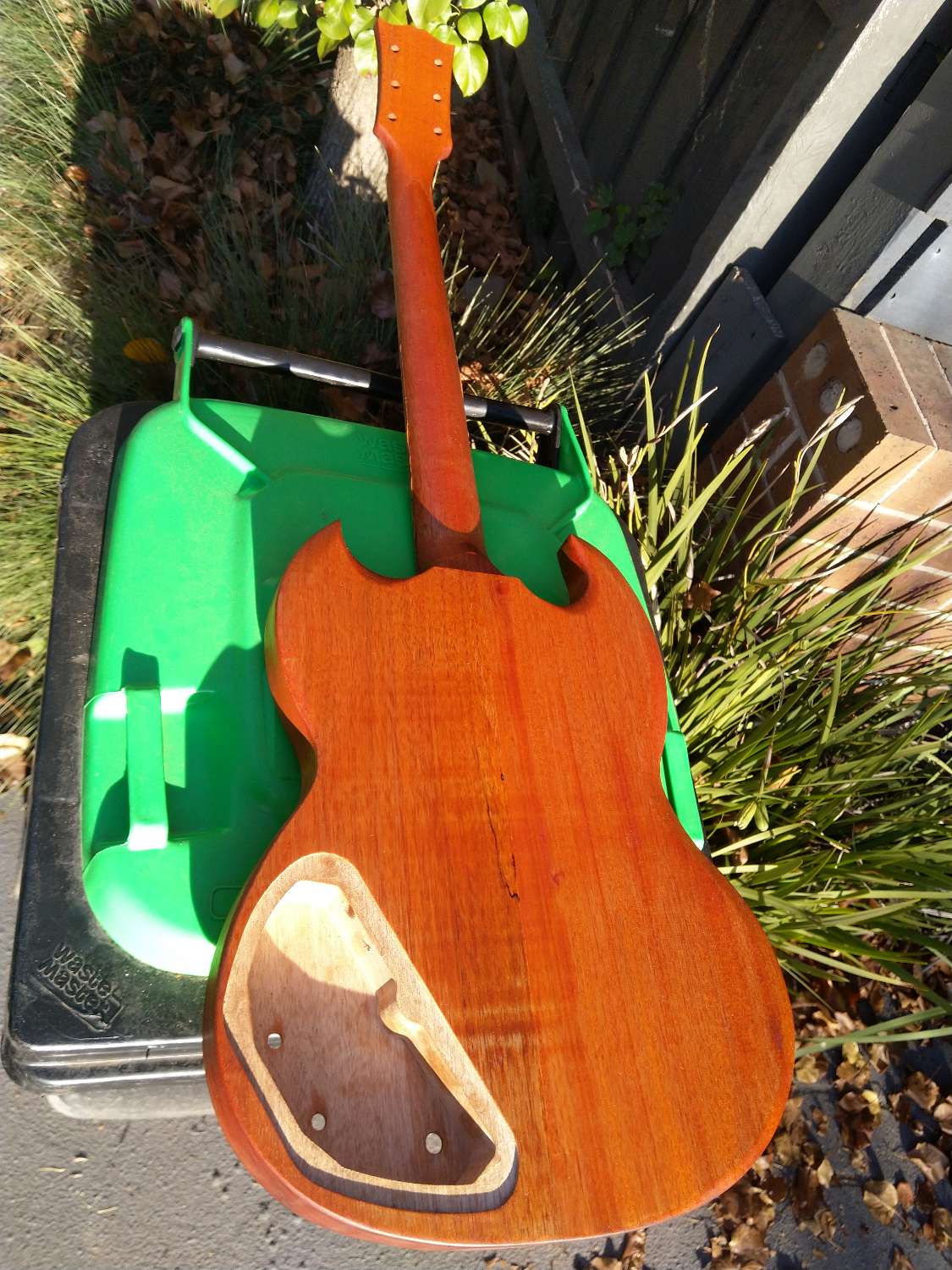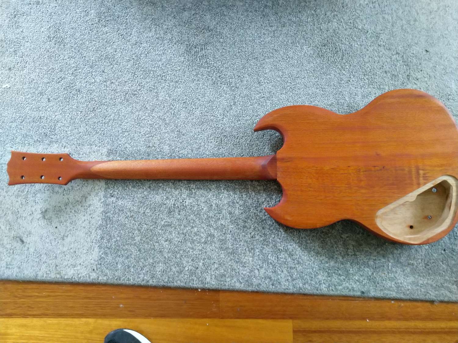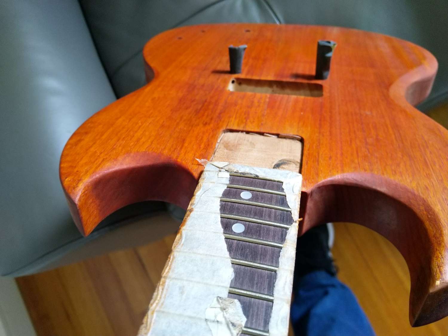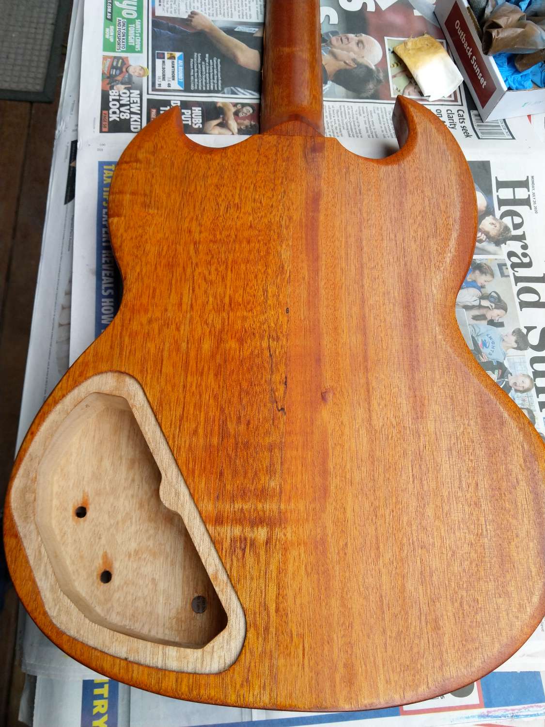 Looking nice. I got a similar colour with Dingotone Coolangatta Gold on the mahogany body on a FVB4 kit.