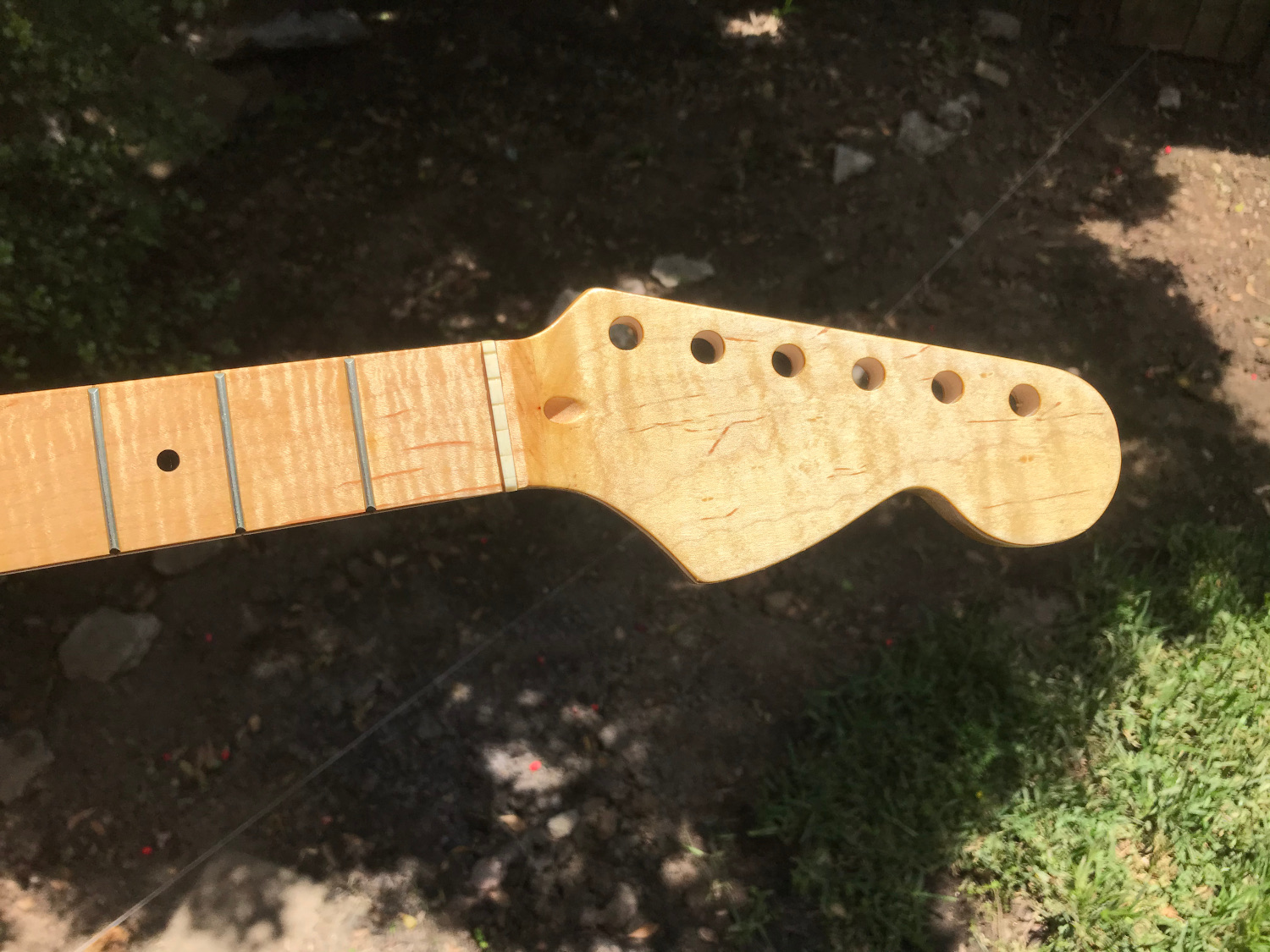 Here in Canada, I just discovered a company that makes a nitro laquer in a neck amber colour, so I'm hoping to try that out on mine, I'm just a little concerned on if the laquer will be difficult to remove from the frets or if I should attempt to carefully tape them
