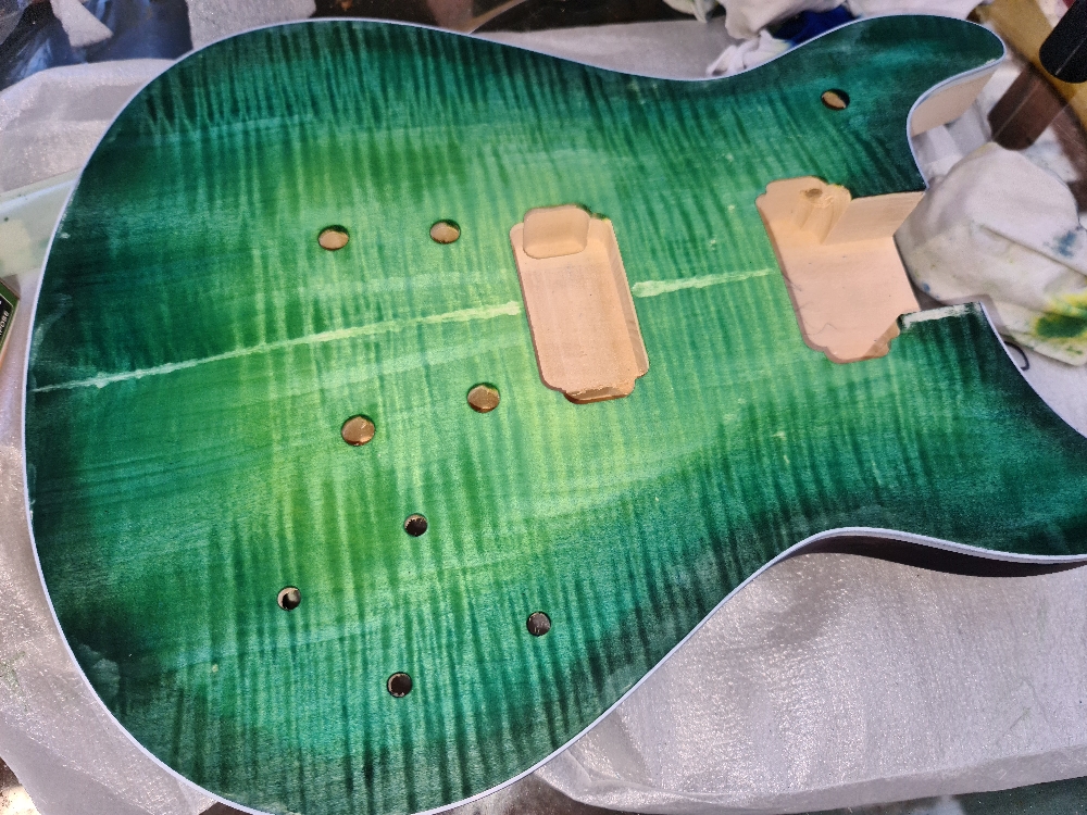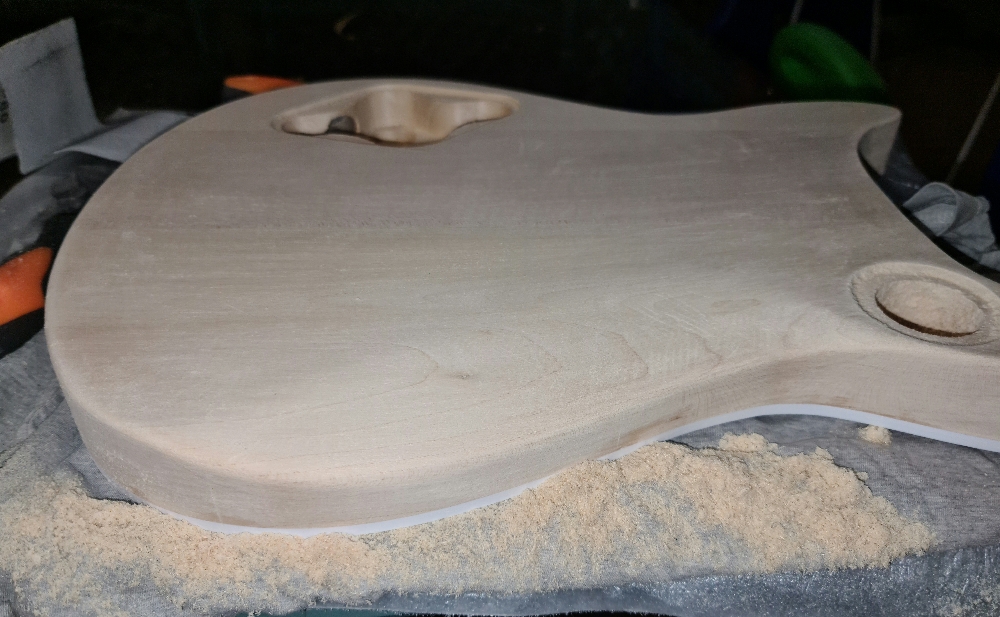 As it stands right now, I'm making my way into finer grits on the back of the body. And hoping to have it finished ready for stain shortly. And hoping to get stain done tonight.