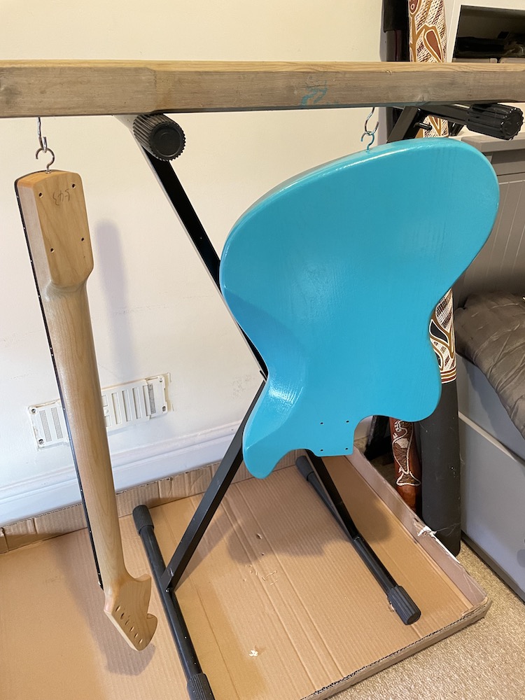 I'm probably only going to do three coats on the neck. The body will have around three more colour coats and then around four clear coats.