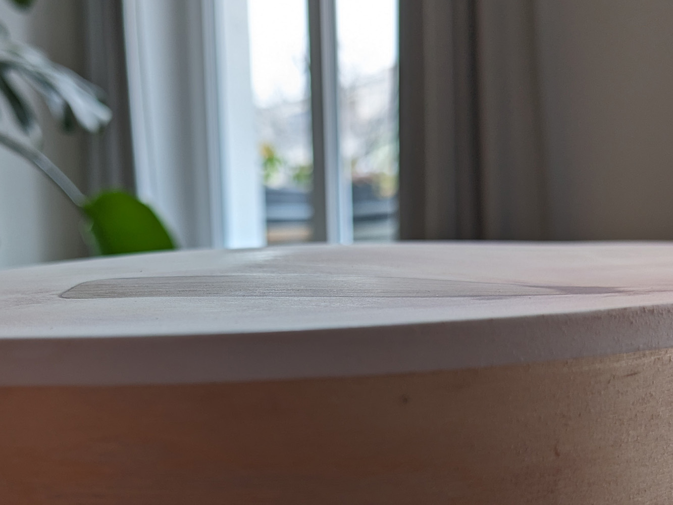Again there are some bumps...i think curved tops are very hard to veneer without a vacuum press and experience :) maybe it is also because of the veneer, which was thin and dry...maybe you have first to soften such veneer, to make it more flexible...but I am still fine with that result...