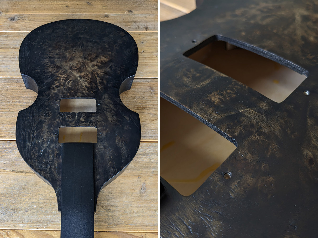 After sealing the electronic cavity in the front I tried one more time to veneer a body...and like the last time it did not went perfect...