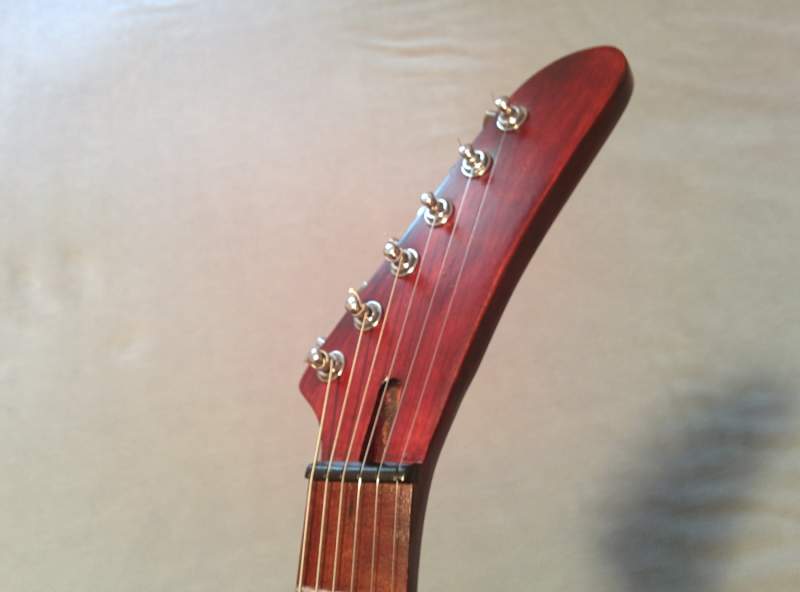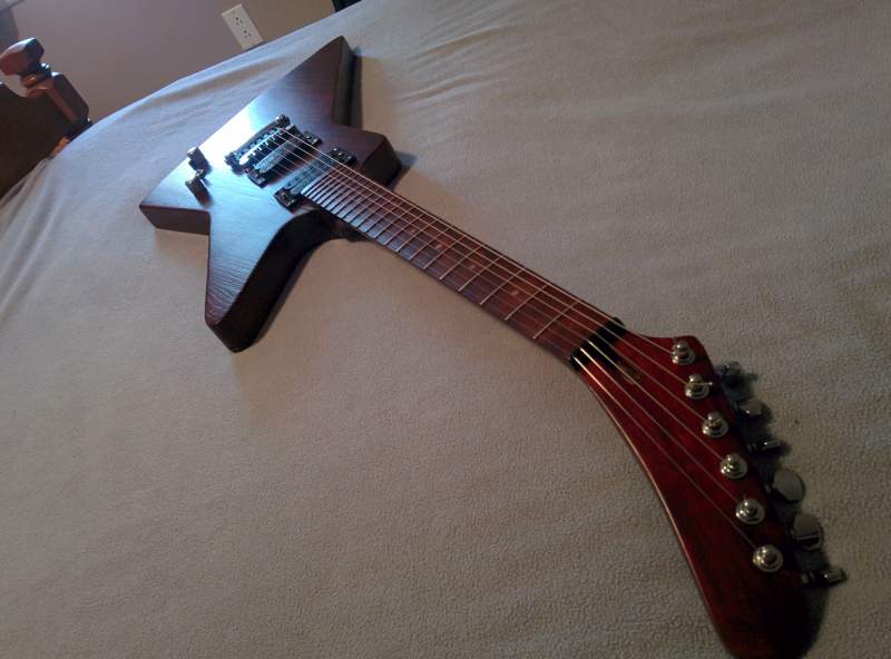accidentally posted this in the april thread! anyways, here it is again,. my Ex 1. I used a deep mahogany satin stain, I must have stained and sanded this thing a trillion time. I put a seymour duncan full shred pickup in bridge and an old ibanez infinity 2 in the neck. Im in love with how it all turned out. I learned so much from this. You guys are the best.