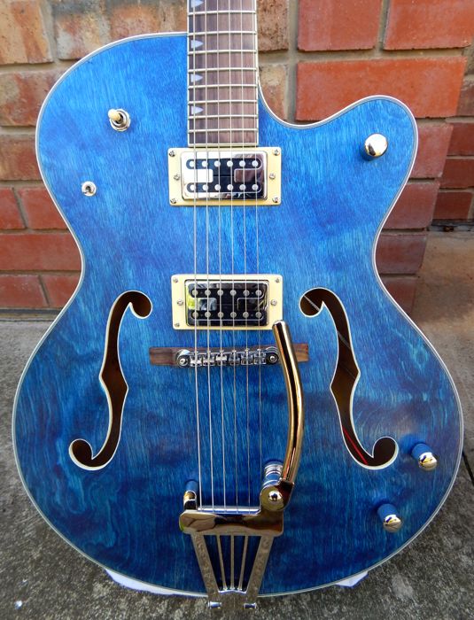 I had planned on putting some Filtertrons or P90s in it, just putting the stockies in until I could get some cash together, but it sounds really good as is, so I might leave it. Very raunchy, does some good QOTSA/White Stripes sounds. In any case I'll have to get over my hollowbody-wiring induced PTSD before I even think about putting different pickups in.