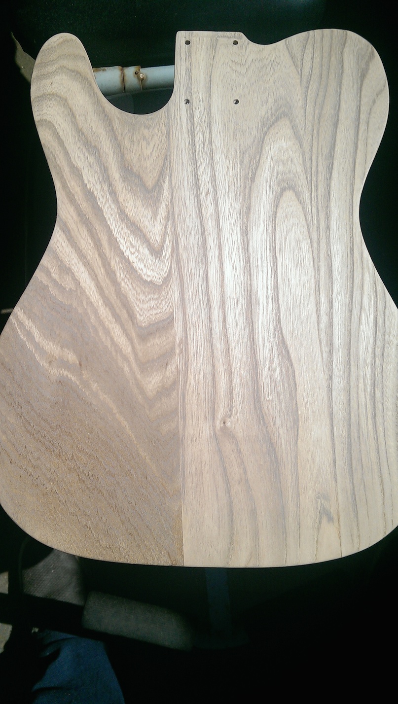The Timbermate really helped, without it the grain is far less defined. Really good idea and only adds about 20 min or so (including drying) to the sanding down. Glad I did not go any darker with the Timbermate as it would have been to dark I think. Also worth taking your time sanding it down and moving up the grades I started at 120 and moved to 360 then 400 each sanding helped bring out the grain as well. learning loads already and its only day 2 :P