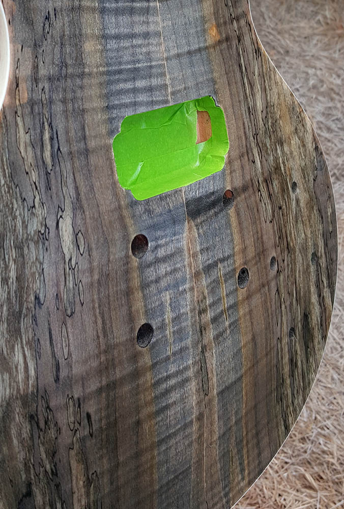 Don't worry about it, taping off pickup cavities is not at all necessary anyway. Neck pocket is the one that is important. Digging how this is looking so far, Kenfu. Flamey, spalty goodness.