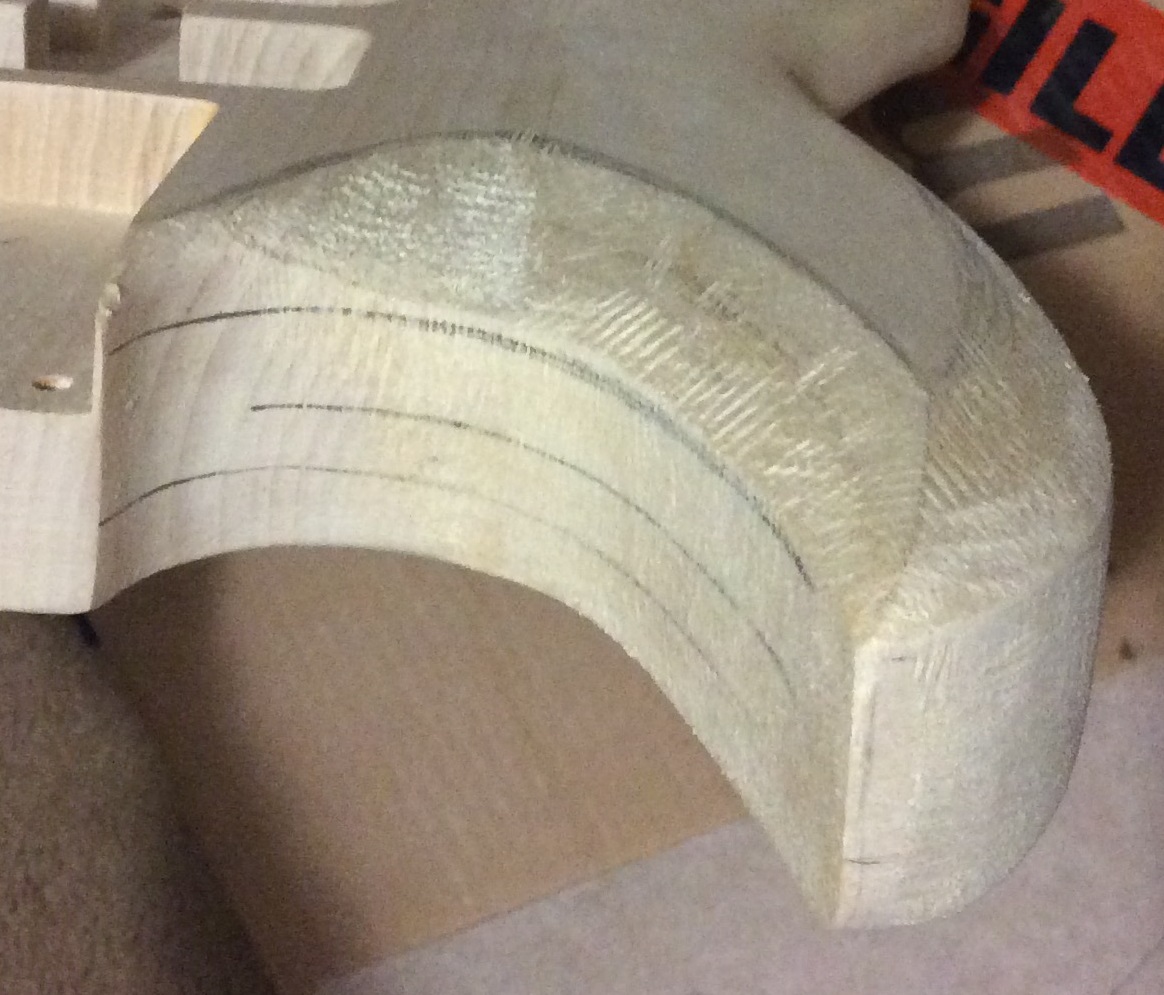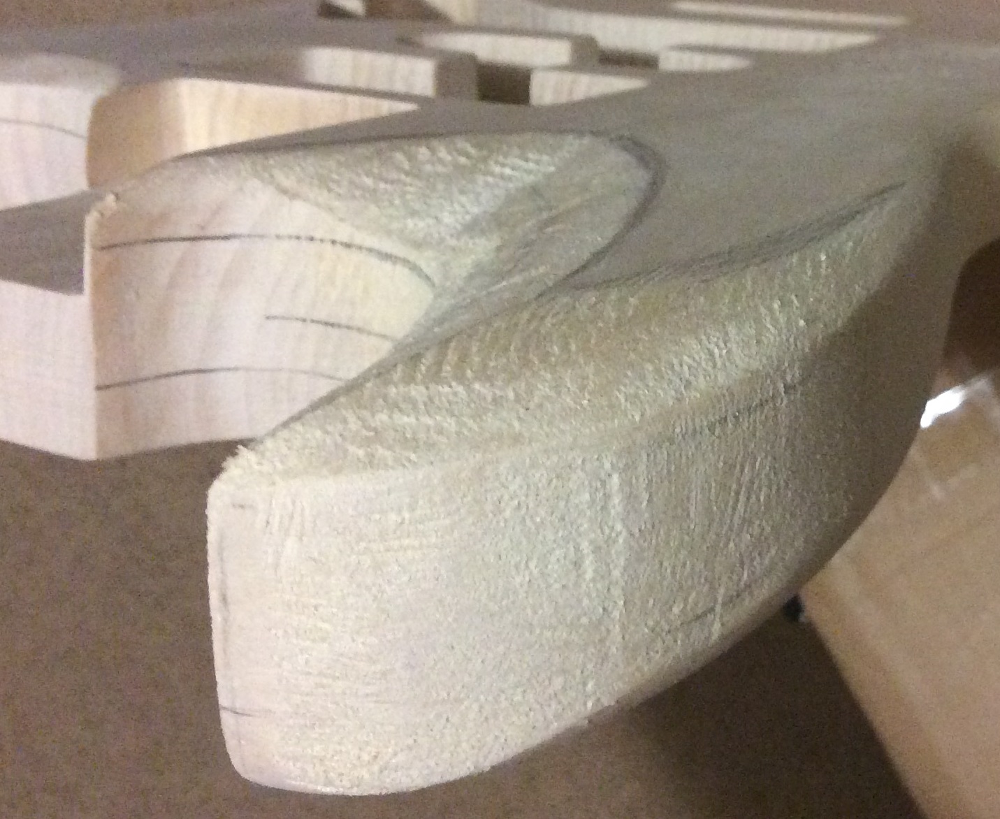 Front of the top horn is roughed out. A couple of little touch ups to be done and then start on the back of the horn.