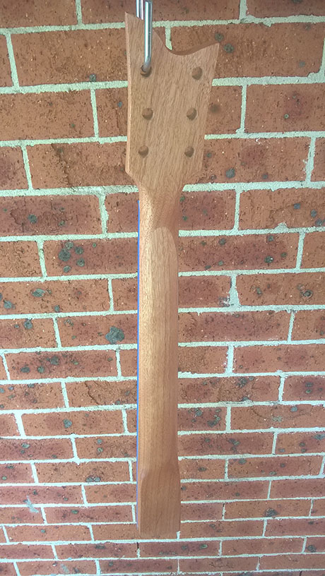 I shaped the headstock to break up all the sanding. It's just a freehand design, but smoothed out the curves using a cheap set square from the greenish shedish place.