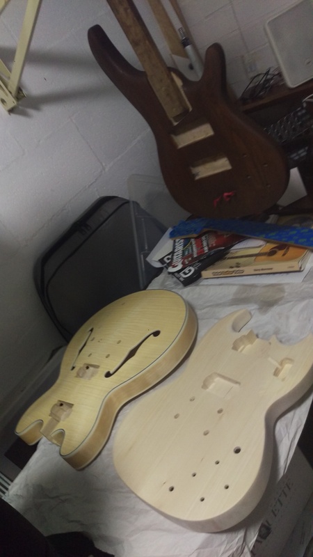 So I'm building my guitars, plus coaching him. It's going to be a fun build as he wants to make it a Frank Zappa SG, the one with 2x switches on the pickguard to tap coil the pickups. We've already done some routing under the pickguard! Fun!