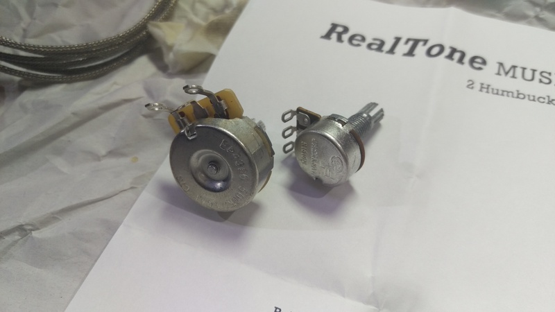 I ordered a Realtone wiring kit for 335 as I wanted to try good electronics for this one. The CTS Vintage pots are huge compared to the ones that came with the kit! They just fit through the F hole...