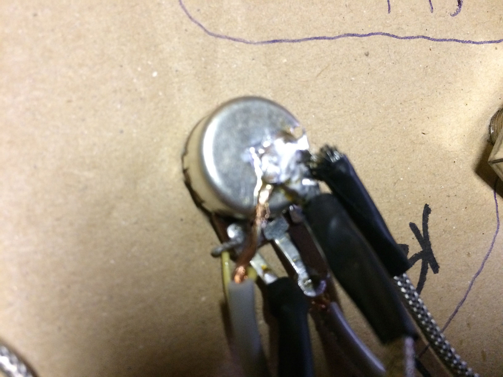 I'm trying to upload the photos. Got home and checked the multimeter again. Getting constant resistance across the outside pins. Only getting resistance from middle (wiper) to input when pot on 10. No resistance at any other point in the shaft rotation on both volume pots.