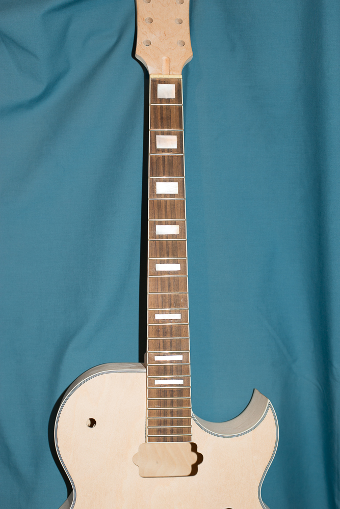the mock build is coming along nicely Tweaky, so I presume you removed the frets to do the pearl inlay work ? Are you re-fretting with the same gauge frets ?