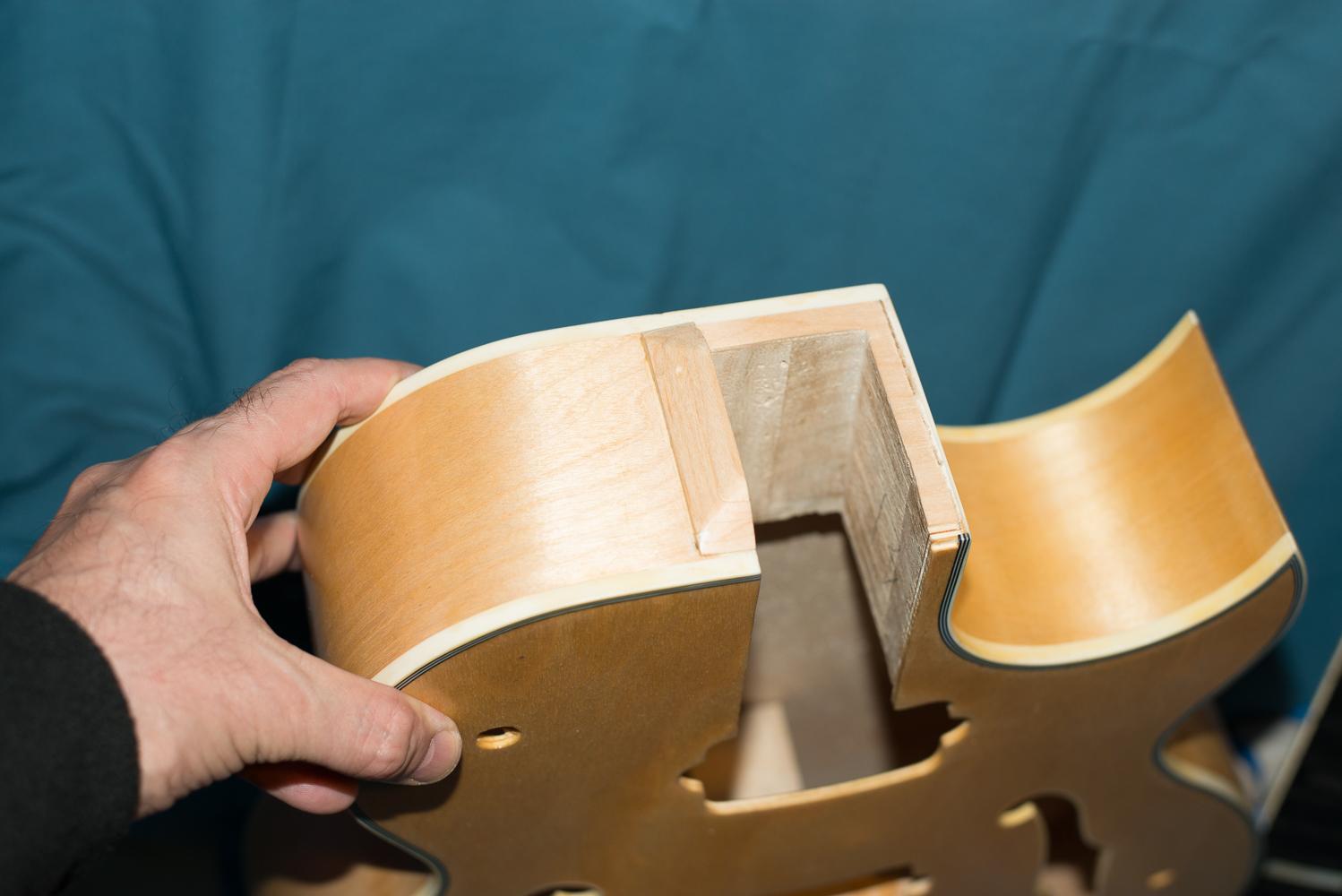 Shellac doesn't like heat guns, and burns.....it turn the small bit of wood dark brown and burn part of the top......to cut a long story short, I had to make a large piece to cover [checking fit with neck on first ], this is what you see in the photo below.