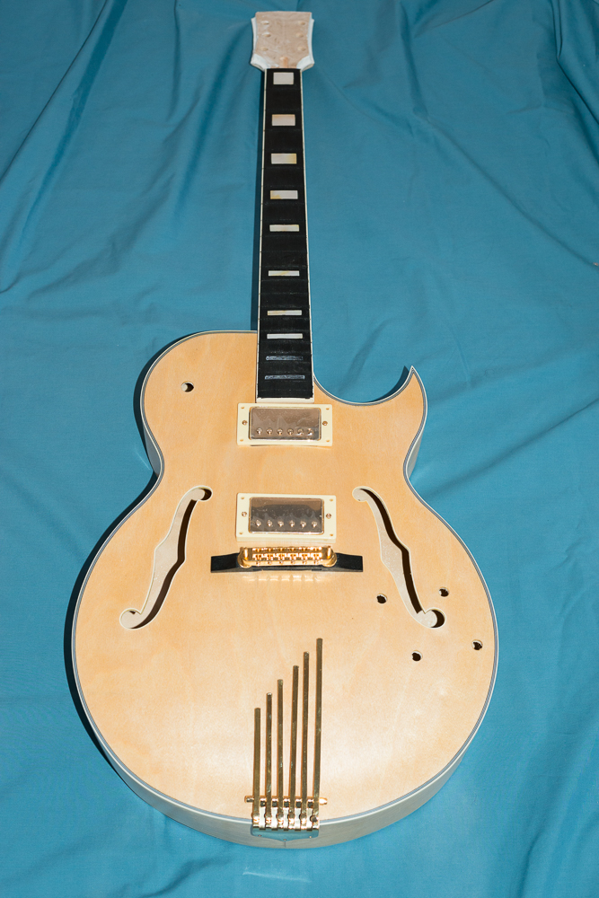 The change for the ES-3 build is a Ebony Archtop bridge, for the Tunematic bridge piece I have used from the ES-1G kit.