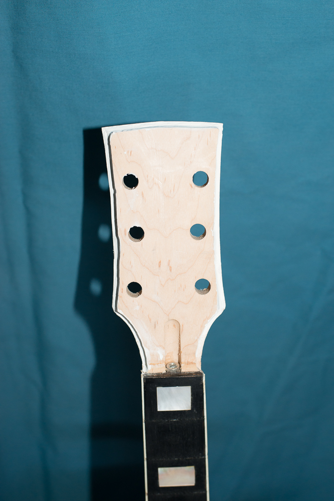 wow that headstock needs some work, hope the strips of veneer can save it !