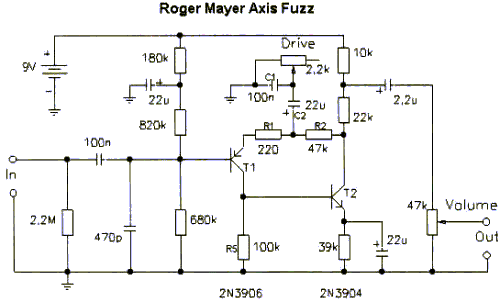 For the time being, here's the circuit diagram of the Axis Fuzz Pedal: