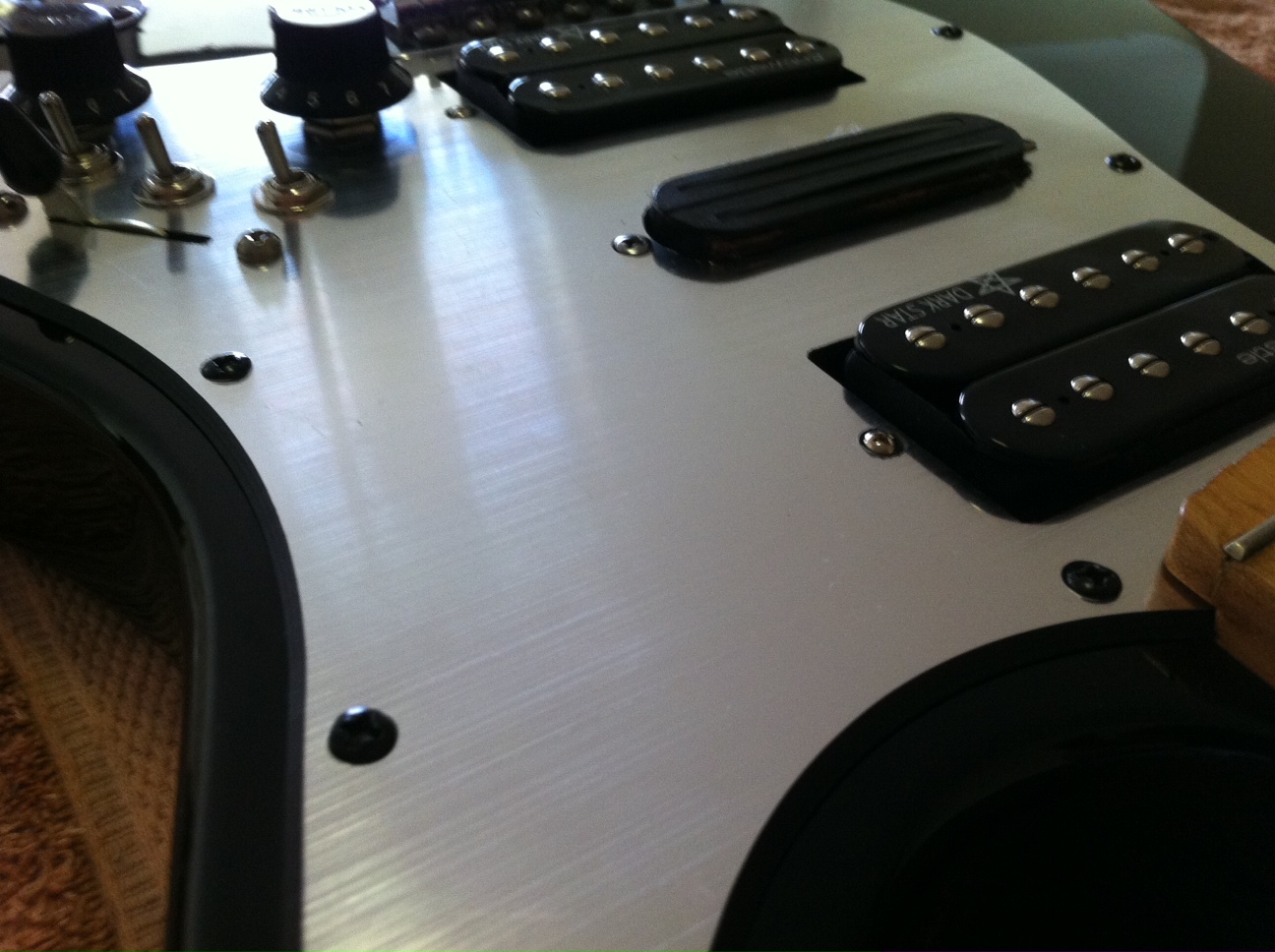 Here is a shot of 3 of those mini dpdt switches I used on my Son's strat copy mod a couple of month ago. They are fairly small and discrete, not like a typical LP switch. Gotta use Di Marzios only as the cheapies are pure rubbish.